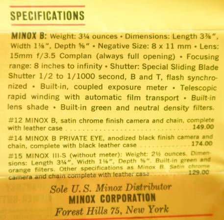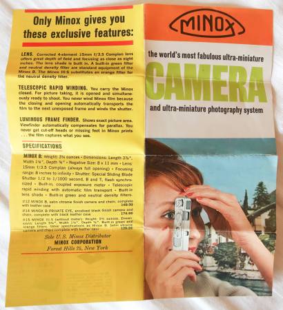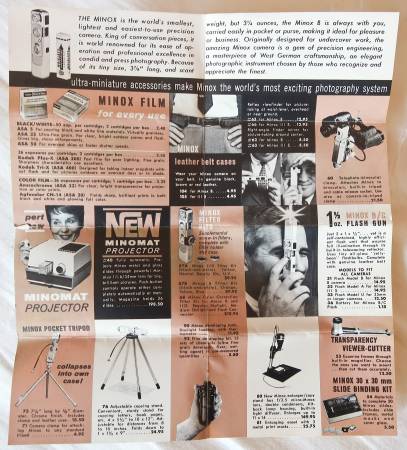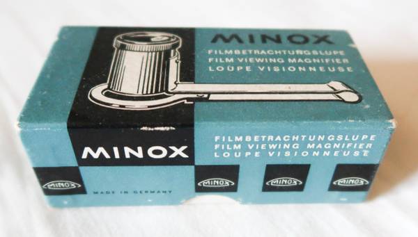 Also, Minox Transparency (negative) viewer-cutter in original box and small tripod and film container.
