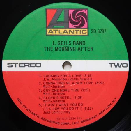 The J. Geils Band "The Morning After" 1971. Atlantic SD 8297. Light scuffs vinyl. Some wear jacket. Original inner sleeve. VG+. $8.