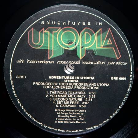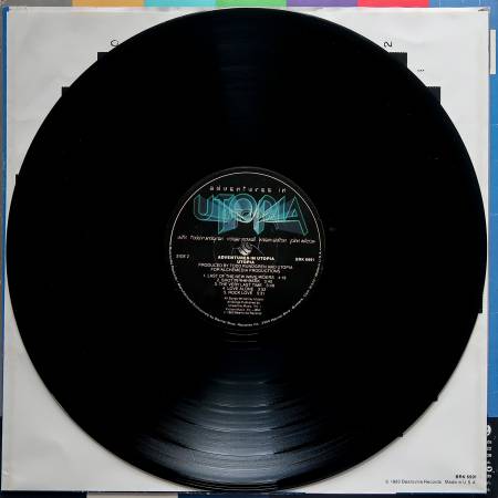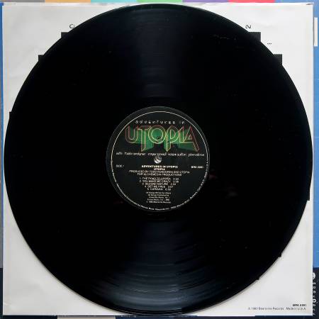 Utopia "Adventures in Utopia" 1980. Warner Bros/Bearsville. BRK 6991. Gatefold. Lyrics on inside jacket. Promo. Original inner sleeve. Good jacket. One hairline vinyl. Excellent vinyl. $9.
