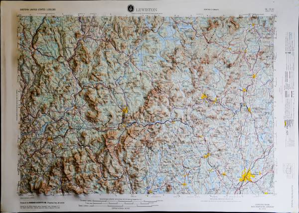 The White Mountains map is an elevation-based illustration printed on a sturdy plastic sheet. That 2-dimensional map is then thermo-formed using a proprietary technique to conform to a detailed terrain model, creating a precisely molded 3D map.