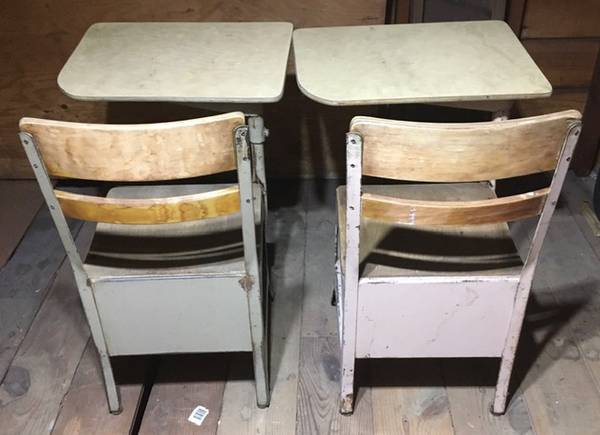 VINTAGE (2) STUDENT WOODEN & STEEL SCHOOL DESKS W/ UNDER STORAGE AREA Condition: Good Price: $100.00 for both, or B/O Price: $55.00 each, or B/O • Please do not ask for me to text you. • I am...