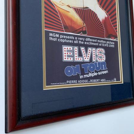 MGM presents ELVIS ON TOUR in Multiple Screen - This was a 1972 Live Motion Picture - PROFESSIONALLY FRAMED Mini Poster. In beautiful READY TO HANG CONDITION- already Framed & Matted ! Framed size is 15 1/2" x 21 ".