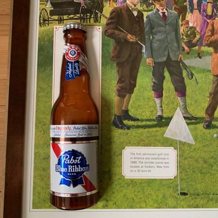 Vintage in New condition Never hung or Used this has been stored away - PABST Blue Ribbon Old Time Flavor "Golf" - with the 3D ( Raised Bottle ) - Bar Beer Sign ! This one measure's 17-1/2 in x 15-1/2 in.