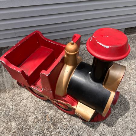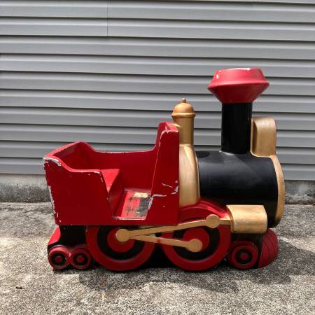Vintage 1970's Lil' Toot Toot Kiddie coin operated Red Train Engine Toy Ride. This is the train engine seating part only, as shown, the mechanical and coin operated part are not here. True vintage part of a kiddie ride from the 1970s ! Made of fiberglass, heavy duty, size is 37inches wide x 21 inches wide x 34 inches high. Super cool and unique !