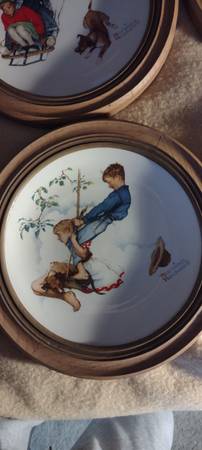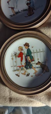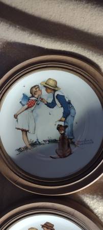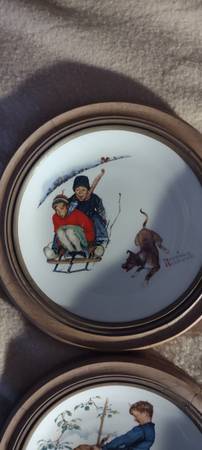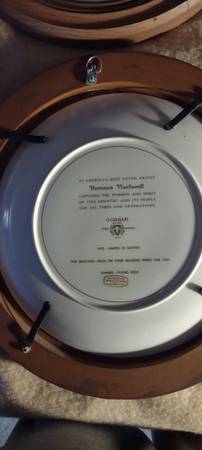 Set of four limited edition plates Norman Rockwell plates made by Gorham. Selection is from the Four Season series. Large plates about 10.5" in diameter without frame. Each plate is in a wood frame...