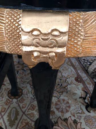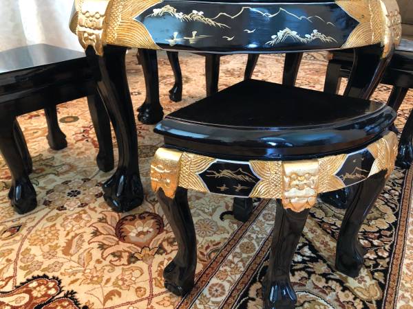 The only flaw is that the lacquer is damaged in one spot on one of the stools, but it’s not noticeable.