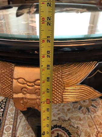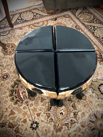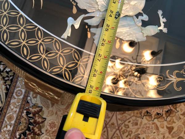 Shown with a 60” inch round table cloth (although 70” might be better) to show the versatility of this table — doubles as a regular side / coffee table if you decide to change your decor! **If you like the tablecloth, I will include it for FREE**