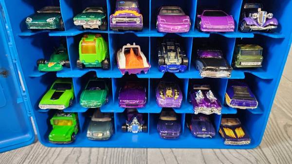Mattel Hot Wheels Blue 48 Car Carrying Case Filled with 56 Cars! 2000s (Box 4) 15"L x 4"W x 11"H 7 lbs. Text / call Will at or send a message. Ask questions or to plan a time to come take a closer...
