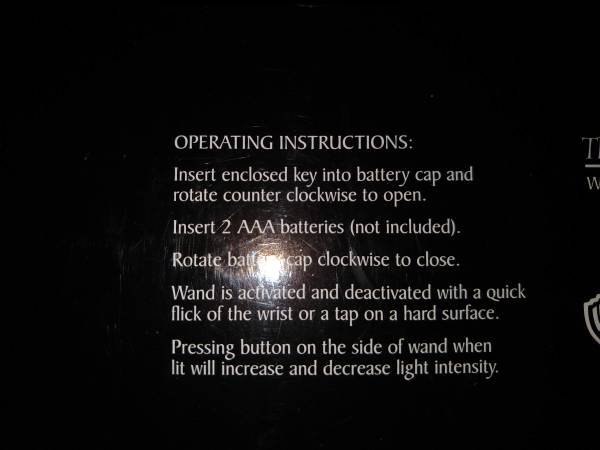 the Nobel Collection light up Harry Potter wand illuminating Working requires 2 AAA batteries not included. 2011 Approx. 14" long Inside battery compartment clean! New in original box with plastic....