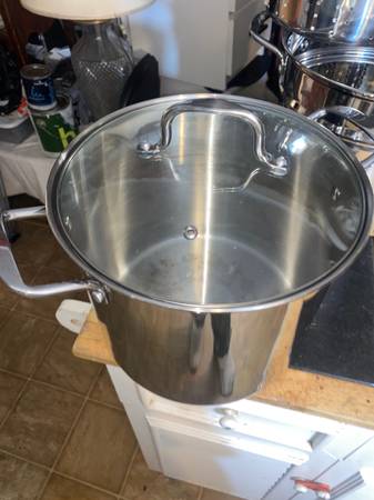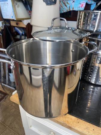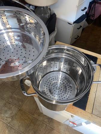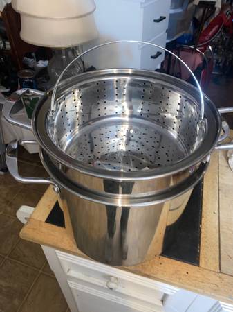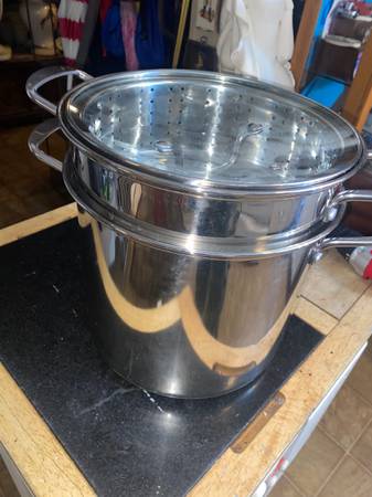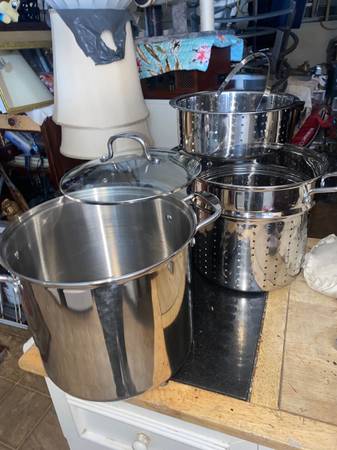 This is a complete 4 piece set Our Table is the brand stainless steel pasta cooking set. It's 12 quart which is a very big size pot with Lid and two pasta strainers inside plus the pot. It's all stainless steel and made to last many years. It's lightly used but overall in excellent condition. Check out photos and email or text with any questions.