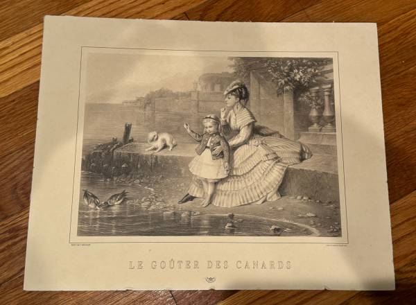Le Gouter Des Canards Grave Par Amedee Eugene Varin peint par c brochart ETCHING. (happy to deliver for a reasonable fee) (SLOW)