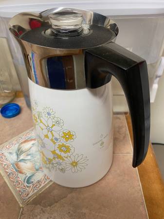 Corning Ware 9-Cup Percolator Pot (1971) "Floral Bouquet" - This Pot Is In VERY CLEAN Condition. NO Chips Or Damage. - Looks Brand New. - $60 - I Accept PayPal And I Can Ship. - OR...Meet In Public...