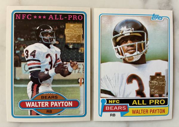 There are multiple cards with Walter Payton, including 2 from Topps 1982 set. Also includes HOF Brian Urlacher card. Chicago Bears Legends Bryan Cox and Doug Flutie