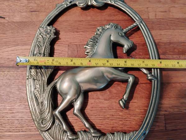 SOLID BRASS Unicorn wall hanger-see Pics for size (weighs 1+1/2 Lbs.) -Made in Taiwan