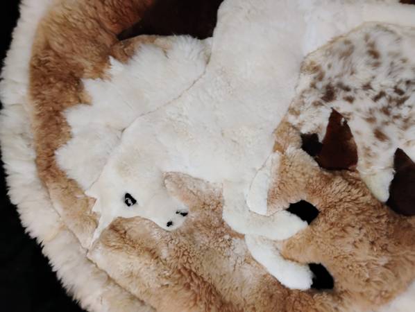 HAND-MADE Unicorn pattern Alpaca Fur/Pelt from Peru, 42-inch diameter.