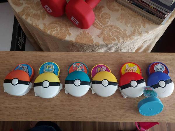 SIX MCDONALD'S HAPPY MEAL POKEMON POKEBALL SHOOTERS PLUS AN EXTRA POKEMON DISC (WITH NO POKEBALL) = $10 LOCAL PICK UP - HACKENSACK, NJ