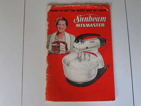 In working order, original milk-glass bowl and beaters Also includes original manual and recipe booklet