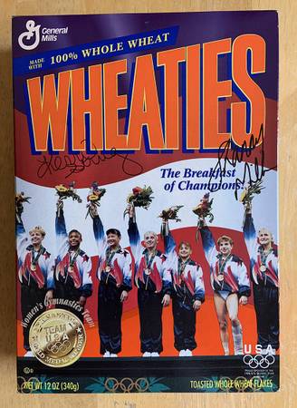 Kerri Strug and Shannon Miller autographs on unopened Wheaties Box for $70