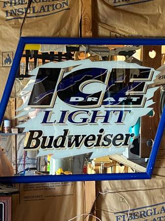 One Bud Light ice mirror sign and one barrel beer sign for more info please call or text the number listed Call for price ITS NOT FREE!