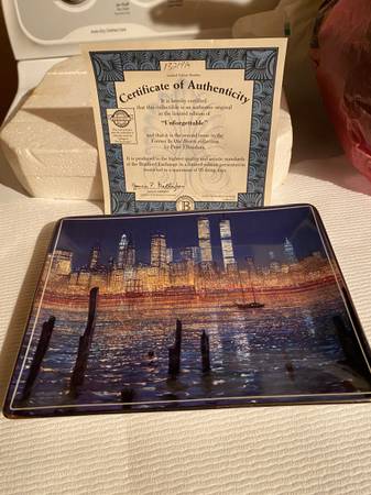 Two twin tower collectible, plates, titles, unforgettable by Bradford exchange
