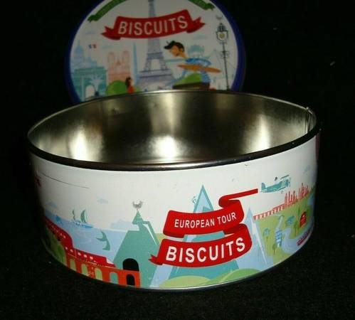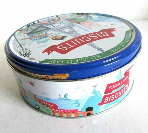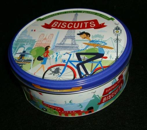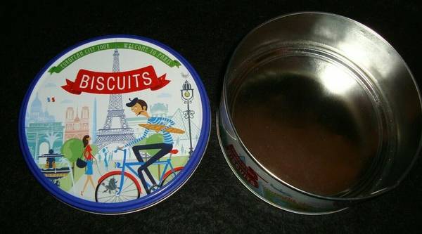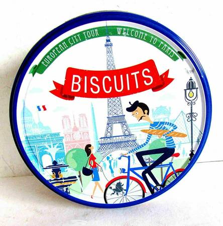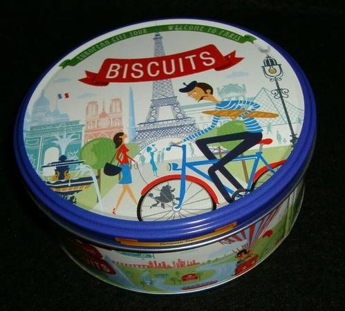 1) Empty - Cookie Tin - European City Tour - Welcome to Paris - Biscuits - Empty - $10.00
