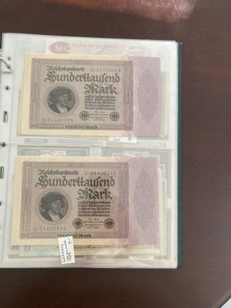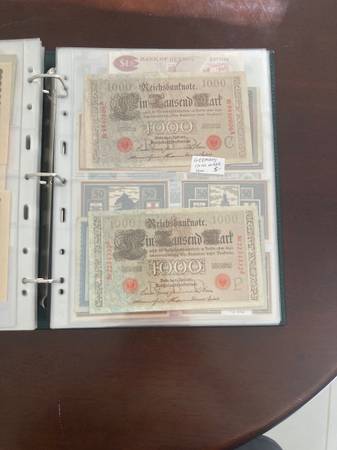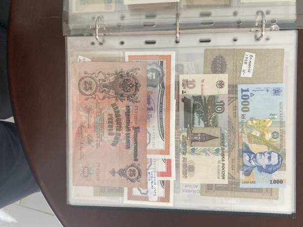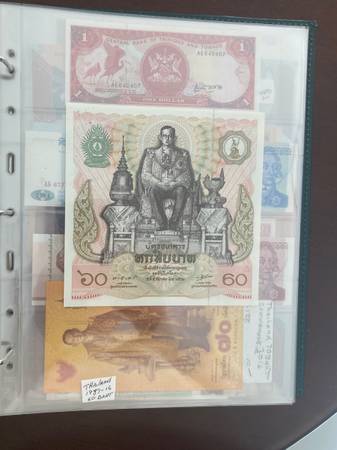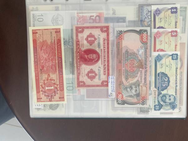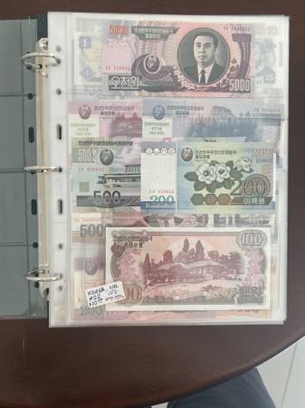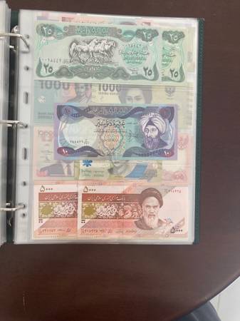 450 foreign note collection in album w/slip cover. Notes are mostly uncirculated. No duplicates unless consecutive serial numbers.Price is $900 firm firm firm. Please contact me with any questions....