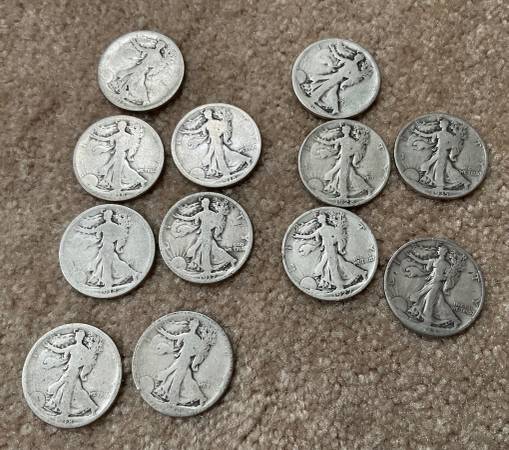 Selling a collection of 40 nice Walking Liberty Half Dollars from 1917-1945; 4 Morgan Silver Dollars, 1879 (second year of issue), 1888-O, 1900, and 1921. Nice dates and conditions included. Photos are mine. Reduced to only $890 - a great hedge against expected inflation! Silver is continuing to grow in value.