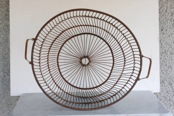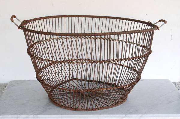 I'm selling a large Vintage Metal Clam Basket with Handles It is made of metal wire It is about 24" x 22" x 14" tall