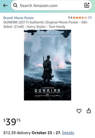 Dunkirk - Original Movie Poster ( 2017 ) 27” x 40” Double Sided The back side is inked mirror imaged with the verbiage backwards Mint - still in plastic tube and shipping tube Never Displayed $30 -...