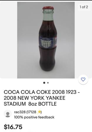 ( 2-bottles ) 8oz Coca-Cola from Yankee Stadium ( 1923-2008 ) Mint Condition Offered at $15.00 for both bottles 2 bottles for less than the price of 1 ( Cash and Carry Only ) Online $16 each plus...