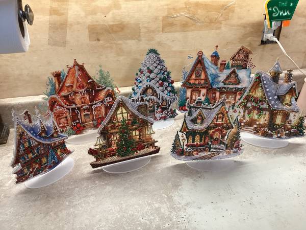 Set of 7 acrylic panels Christmas houses done in rhinestones throughout. They come with a stand. You can either add tealights in back of them or a set of fairy lights for a nice display on your...