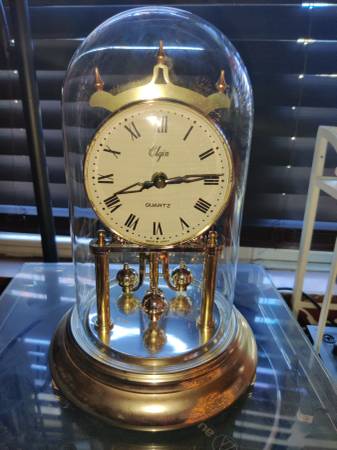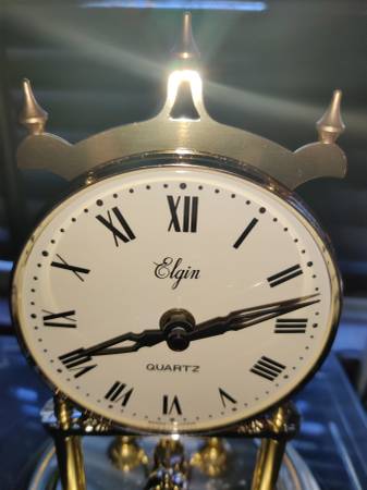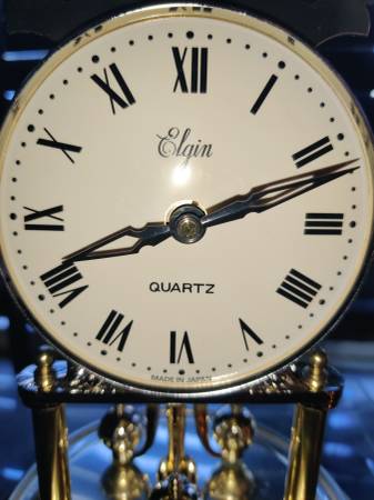 Selling my super rare vintage Gold Elgin Quartz Rotating Pendulum Moon Clock w/ Roman Numerals & Glass Dome, Made in Japan. Tested and working with a brand new C battery included.