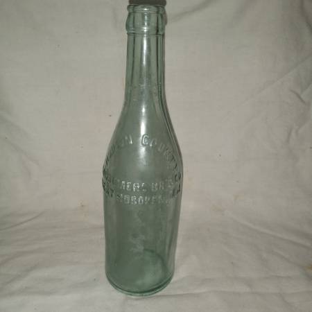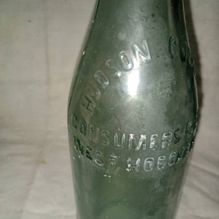 PRE-PROHIBITION Antique glass bottle with embossed lettering that reads "HUDSON COUNTY CONSUMERS BRG. CO.