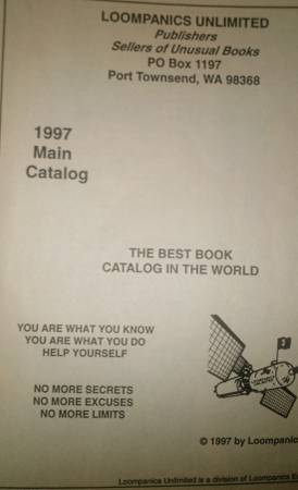 Paperback Publisher: Loompanics Unlimited (1997) ASIN: B000WU2MEK The LOOMPANICS 1997 MAIN CATALOG is a catalog published by Loompanics Unlimited. It is a 195-page catalog featuring various books...