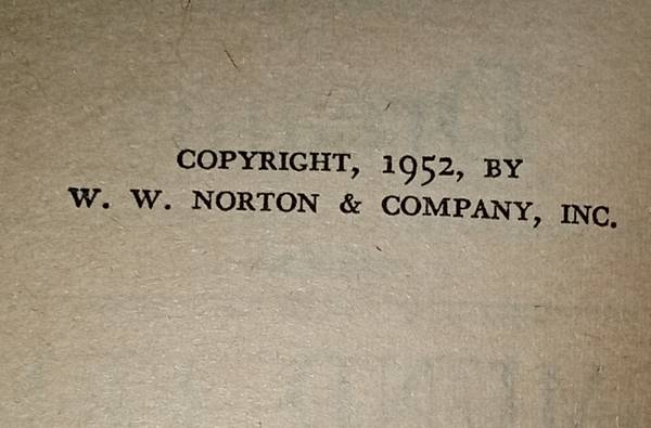 1952 120 pages English Publisher W W NORTON AND COMPANY PICK UP OR DELIVERY (BUYER PAYS SHIPPING) CASH OR PAYPAL ONLY 10.00 OBO