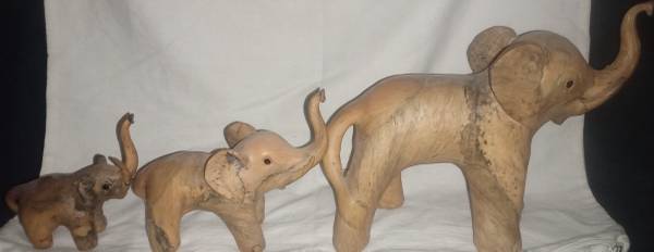 3 Wooden Elephants "Trunk Up Good Luck" Figures - collectibles - by...