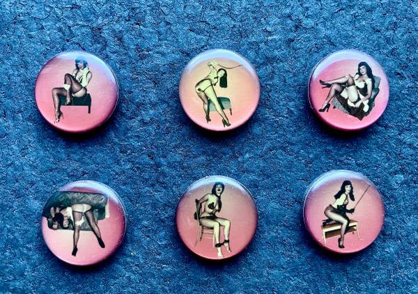 Betty Page refrigerator Magnets from 1986. 6 magnets 1" round.