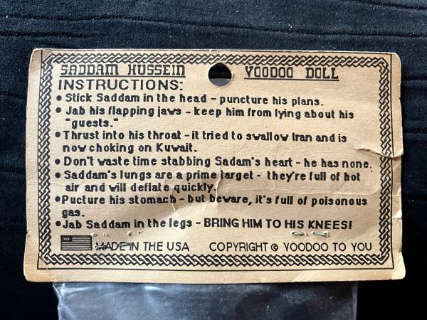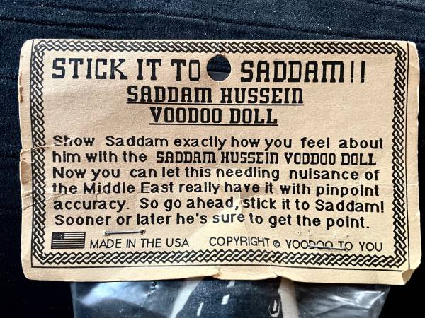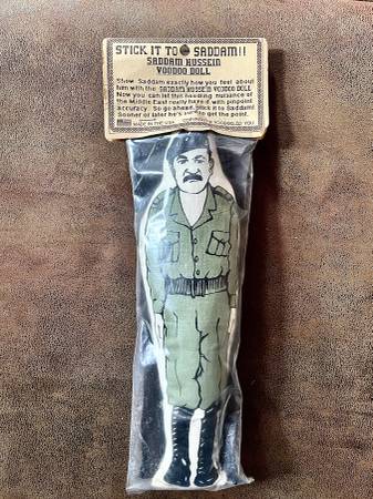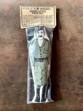 Vintage 1990 Saddam Hussein VooDoo Doll , Unopened New In Package Saddam Hussein Doll from the Gulf War in Iraq. Very Rare collectable.