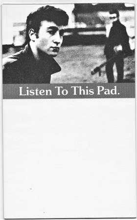 a) 6 [six] pages of John Lennon & Stuart Sutcliffe in black & white with the directive: "Listen To This Pad." Slight age-related yellowing to the bottom white part. 8.5" x 5.25"