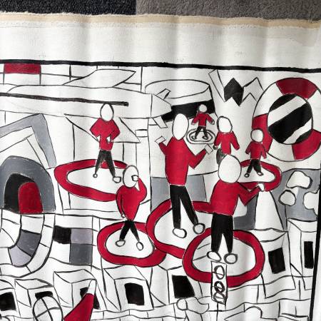 Surreal Painting Large Acrylic canvas 1998 Black Red White Gray -...