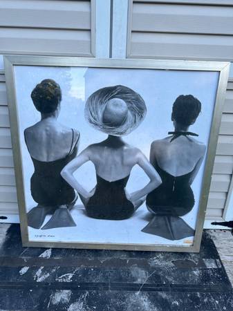 Selling my 1950's Swimsuit Models / Ladies' Swimwear 1959 Fashion Print 36x36 MCM The product in the image is a framed art print titled "Ladies' Swimwear, 1959 Fashion Print" by Uttermost. It is...