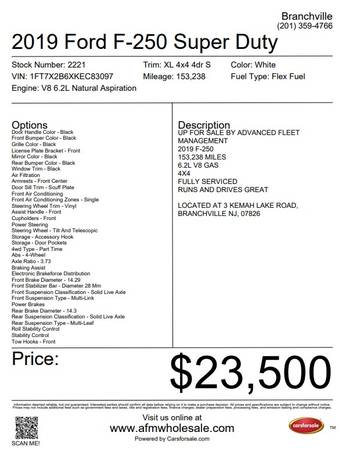 2019 FORD F250 4X4 PICKUP TRUCK - stk#2221 153,238 MILES 6.2L V8 GAS FULLY SERVICED RUNS AND DRIVES GREAT UP FOR SALE BY ADVANCED FLEET MANAGEMENT LOCATED AT 3 KEMAH LAKE ROAD, BRANCHVILLE, NEW...