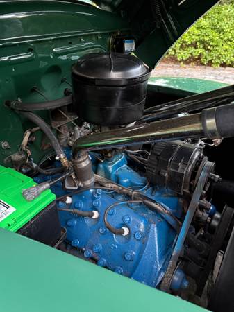 The 239.4ci flathead V8 was factory rated at 100 horsepower. The engine was rebuilt during the refurbishment, and I converted the electrical system to 12 volts under my ownership. Power goes to the rear wheels through a floor shifted three speed manual transmission.