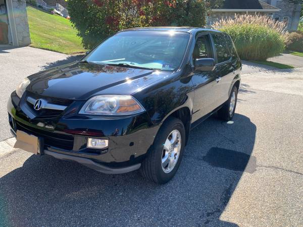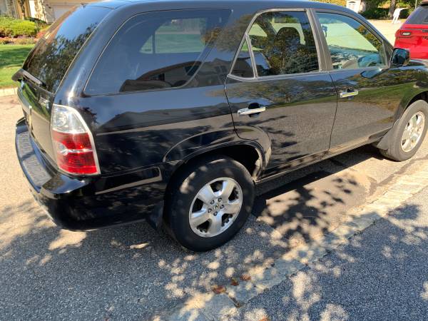 Selling a used black metallic 2006 Acura MDX AWD SUV in excellent condition mechanically as well as aesthetically. This car has been garaged since new and regularly maintained by owner-mechanic; It has 131,000 miles on it (low mileage for this car) with 19-20 mpg (see pic). No leaks of any kind and everything works. The car features a clean title, sun-roof, heated leather seats, heated external rearview mirrors, folding second and third rows seats, CD player and other comforts expected in a luxury car. Only small scratches on right rear fender and small rust spots on hood and left rear wheel fender. Inspection goo through 2026.