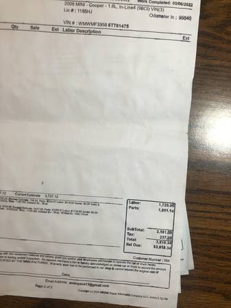 2008 Mini Cooper Parts or Fix Cranks but No Start 1400.00 See photos