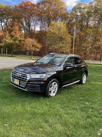 2019 Audi Q5 Black with cream interior, 54,000 miles, one owner, senior female driver, always garaged, downsizing due to family loss, new tires 2025, roof racks, rear weather-tech type mat, pristine condition, clean title, $21,000 or best offer. Vehicle is in Mountain Lakes, NJ. I am handling this for a relative.