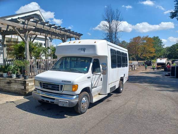 We have a 2004 Ford E450 Super Duty Cutaway 15-passenger Shuttle Bus, with very Low Miles, 17,225.7, and a Clean title. Runs and drives great. Tires are like new. The bus was only used for the winter to transport shoveling crews to service different sites. Asking price $10,000.00 or best offer. The truck is clean, starts right up, and has very low miles.