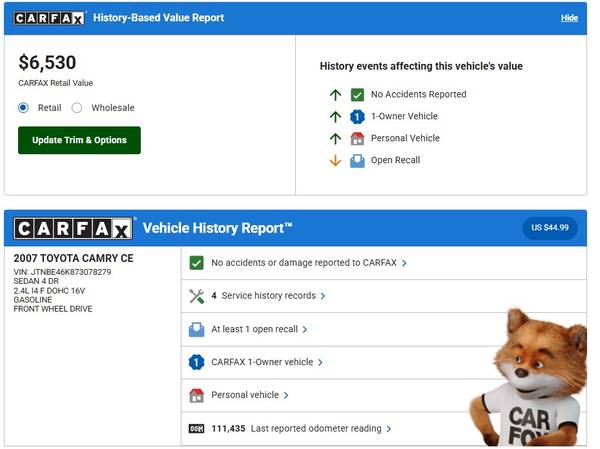 2007 Toyota Camry Le with 113k Miles Mechanically excellent Drives super fine 1 owner, clean title Body has blemishes through out If you are looking for a good reliable car this it. Everything works...