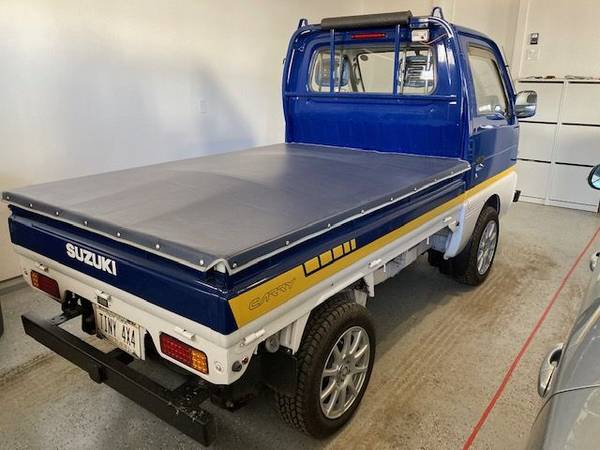 I have a for sale 1994 Suzuki 4 wheel drive Carry minitruck in excellent condition. It is a mid- engine, right- hand drive truck, imported directly from Japan. It is a 3 cylinder, 660 cc gas engine, with a 4-speed manual transmission, with both high and low range, as well as axle and differential locks. It currently has 34K original miles (54km). I bought the best low milage truck I could find with virtually no rust, dents, etc. Then I did a complete restoration with new paint (blue/white/ yellow), the entire interior (seats, door panels, headliner and carpets, steering wheel), added a tachometer, installed all new brakes, 5 new custom wheels and larger tires, heavier front springs, all the rubber hoses and thermostat, as well as changed all the fluids. I also installed new custom front and rear bumpers with a bully bar and hitches built in. It also has LED lighting and a custom- made tonneau cover. The truck also has A/C, which is a pretty rare option on these vehicles. The truck is a lot of fun to drive. The sides and rear tailgate swing down and detach from the pickup body to make a very useful huge flat bed. It gets a lot of attention wherever you drive it. Perfect Home Depot truck. I used it to plow my driveway in the winter, but unlike any other ATV's, this has a roof, windshield and heat to make it a pleasure to plow in the winter. Currently registered and titled in CT, but stored at my house in Patterson NY. It starts, stops, and runs perfect. I am not interested in any trades. Cash deal only. The only reason I am selling it is I already have too many toys. The plow is NOT included in the truck sale. Serious buyers only. No test rides without a deposit.