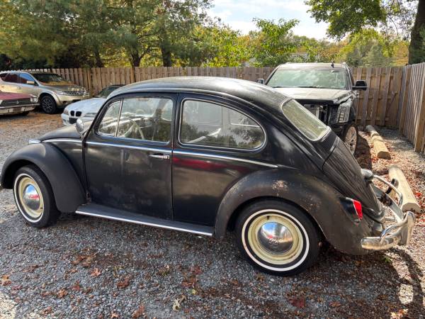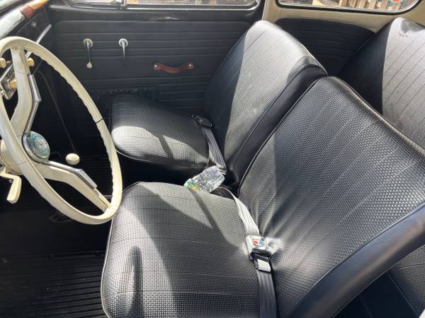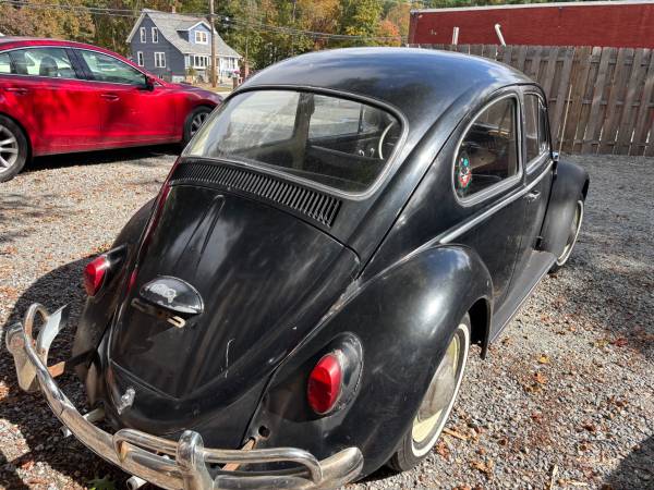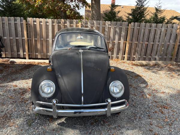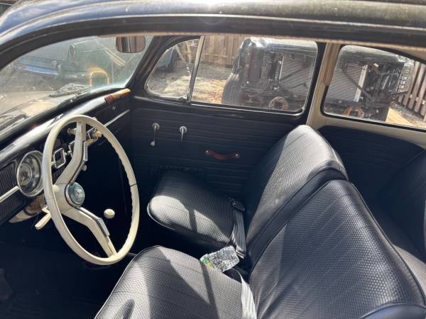 This is an all original Type 1 Beetle - original pan, engine, transmission and body. The battery tray was replaced and welded professionally.. Original paint and patina no bondo or accidents. There is no rot or rust on the body or pan. The engine is in great shape as is the transmission, very road worthy. Brakes redone and original 6 volt system. Interior and headliner are in great shape. The door cards have straps to close the doors. The door seals and steering wheel can be replaced. a great car overall. Mileage TMU. Please leave your phone number for a response.